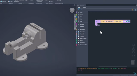iLogic also receives a meaningful upgrade with the introduction of Codeblocks, a visual block‑based way of creating iLogic rules. This approach will feel familiar to anyone who has used Blockly or similar visual coding environments, making rule creation far more approachable for designers without a programming background. Codeblocks separate user input from model actions, improving readability and making rules easier to maintain. For teams building configurators or option‑driven models, the clarity and accessibility these blocks offer will likely encourage far wider use of iLogic across organisations. Importantly, the system still generates text‑based rules in the background, so experienced users don’t lose any flexibility.