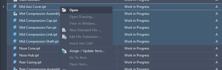 Users can now open multiple files at once directly from the Vault Client, including Inventor parts and drawings. This is ideal speeding up the design process.